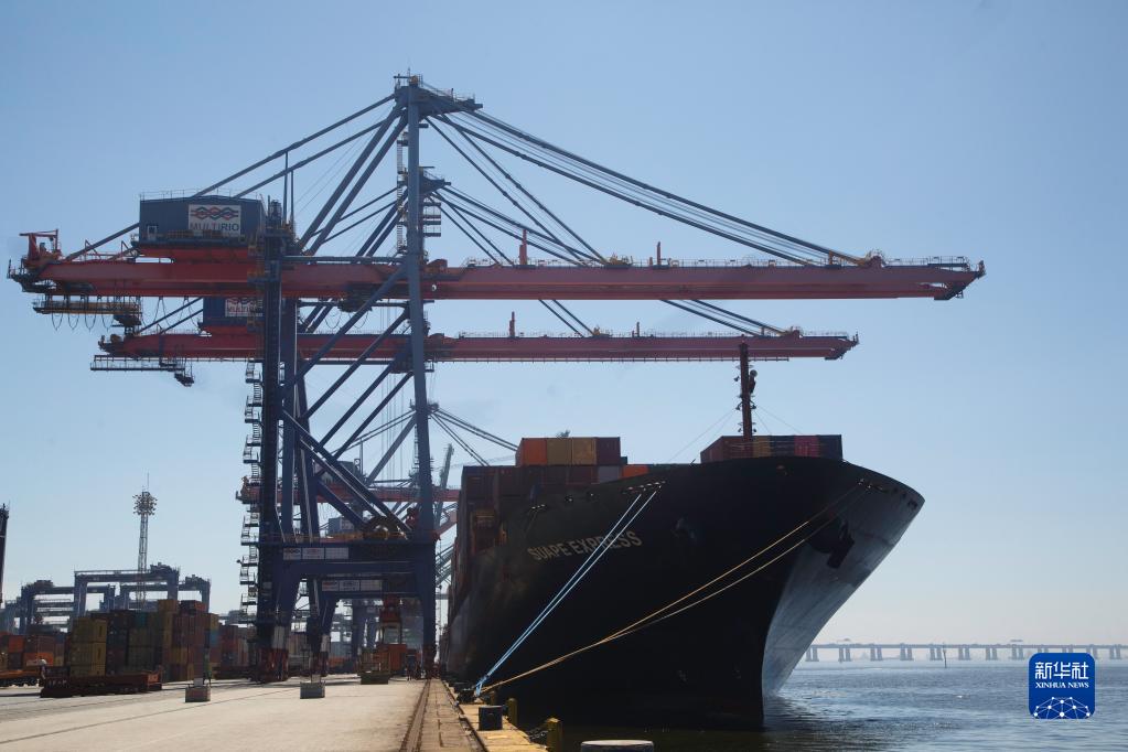 3月20日,一艘集装箱货轮停靠在巴西里约热内卢港一处码头。