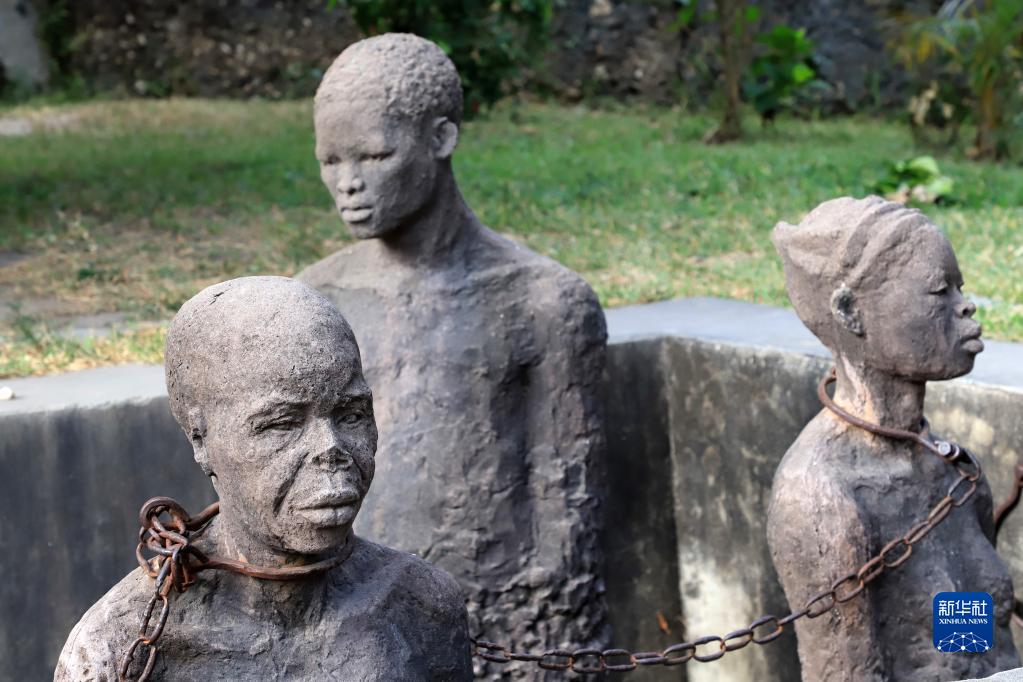 这是2月23日在坦桑尼亚桑给巴尔拍摄的奴隶雕塑。