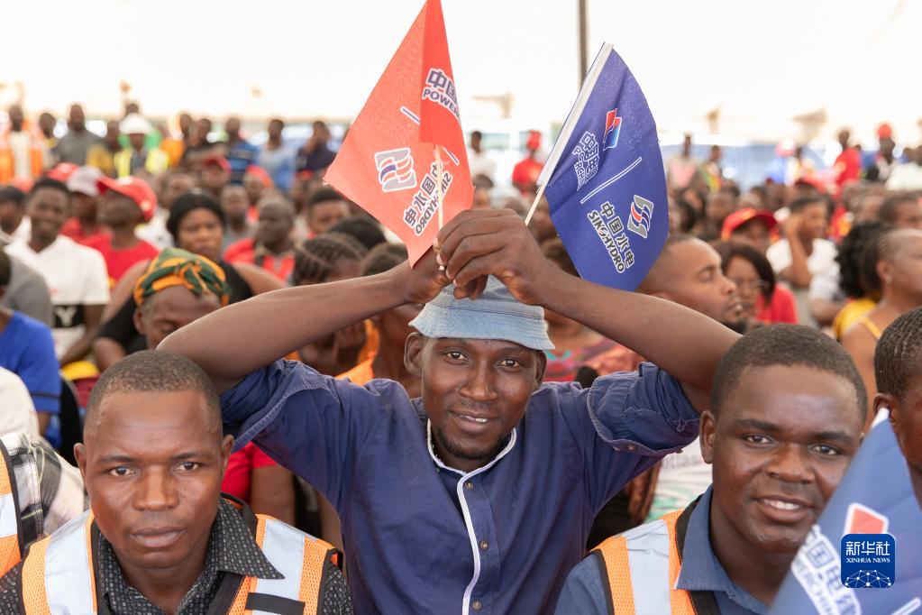 3月24日,在赞比亚南方省,中国电力建设集团有限公司的赞比亚员工参加下凯富峡水电站5号机组发电仪式。