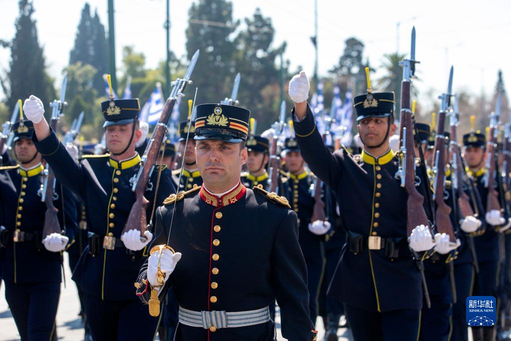 3月25日,希腊军人参加在雅典举行的独立日阅兵仪式。