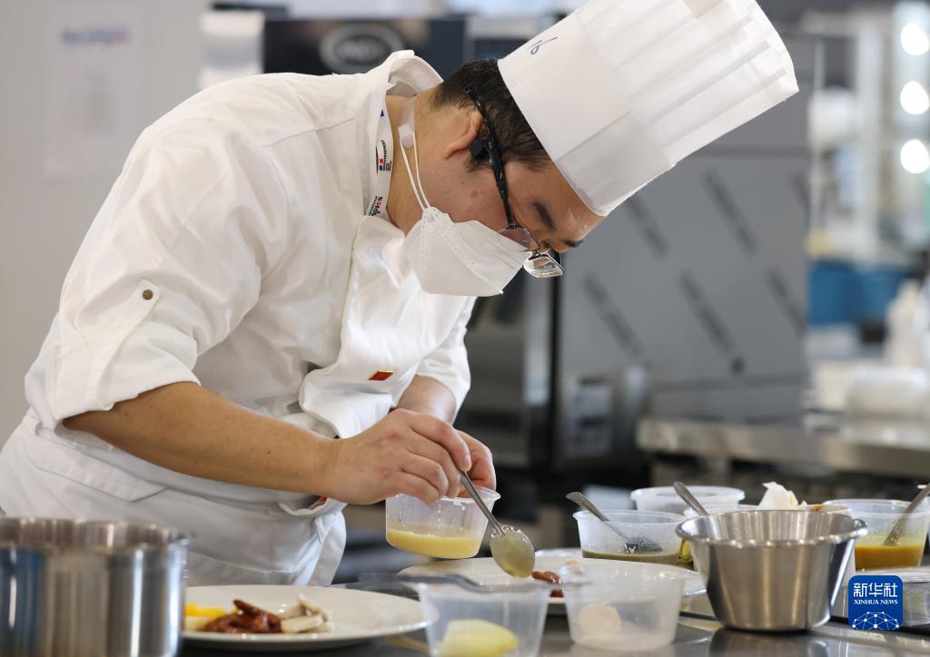 3月25日,在法国梅斯举行的第十届国际残疾人职业技能竞赛中,中国选手田亮参加烹饪比赛。