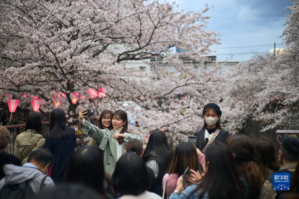 近日,东京进入樱花季,不少民众来到东京著名赏樱点目黑川观赏樱花。