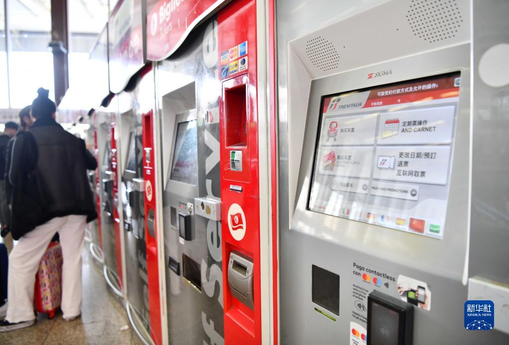 这是3月26日在意大利罗马特米尼火车站拍摄的可提供中文服务的自助售票机。