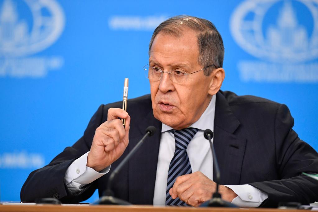 1月18日,俄罗斯外交部长拉夫罗夫在莫斯科举行的年度记者会上回答问题。新华社发(亚历山大摄)
