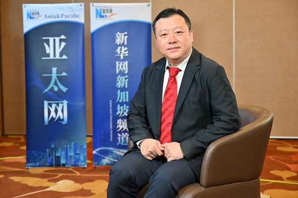 图为用友软件(新加坡)私人有限公司执行董事、总经理陈崑在接受新华网专访。(陈冰 摄)