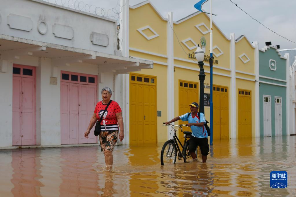 位于巴西西北边境的阿克里州近期连遭暴雨引发洪灾。由于支流水量暴增,阿克里河水位3月31日仍处高位。