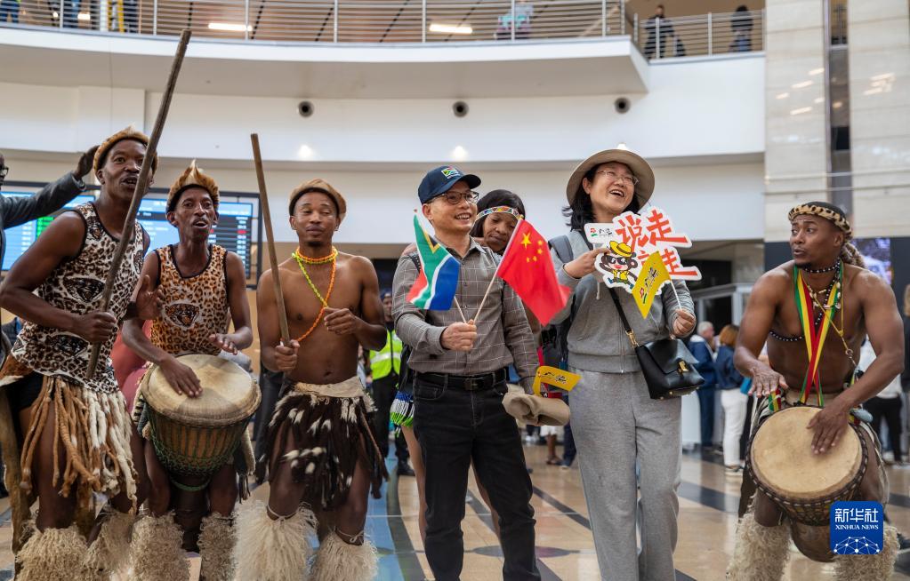 当地时间3月29日上午,搭乘国航航班的13名中国游客抵达南非约翰内斯堡坦博国际机场。这是中国试点恢复出境团队旅游后首批抵达南非的中国旅行团,南非旅游局在机场举行了热烈的欢迎仪式。