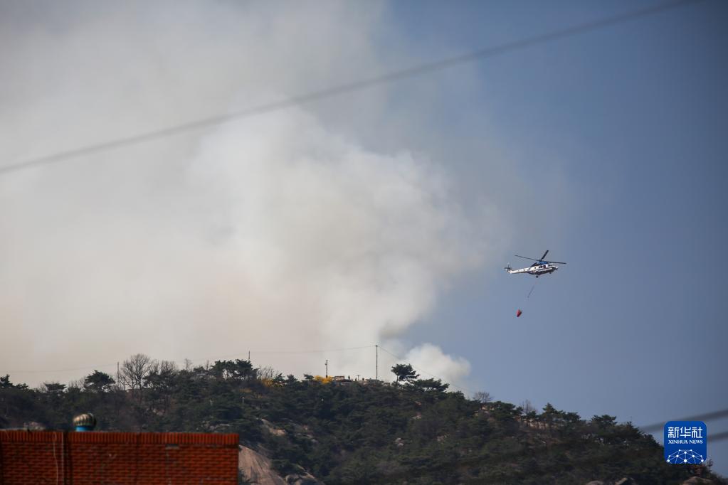 4月2日,直升机在韩国首尔市仁王山上空执行灭火作业。
