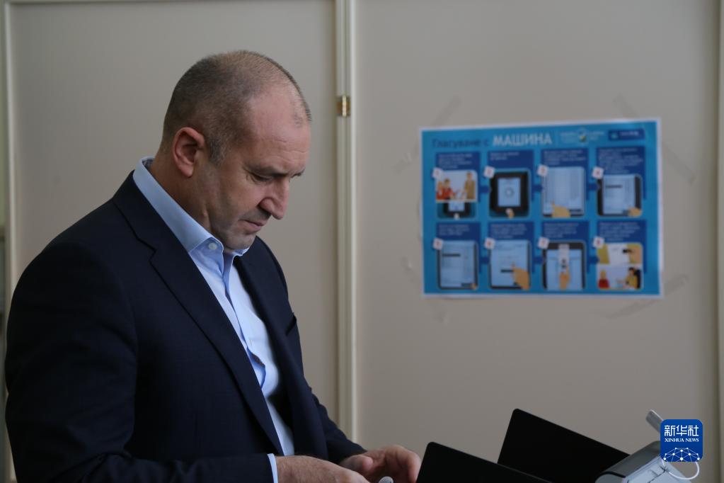 4月2日,保加利亚总统拉德夫在索非亚一处投票站投票。