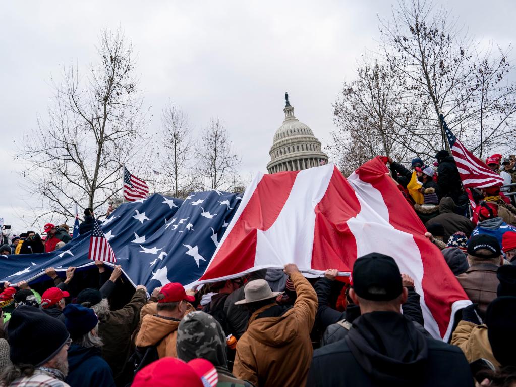 2021年1月6日,在美国首都华盛顿,特朗普的支持者举行示威,部分人冲击国会大厦。骚乱造成包括一名国会警察在内的5人死亡、约140名执法人员受伤,并导致认证总统选举结果的国会参众两院联席会议被迫中断。新华社记者刘杰摄