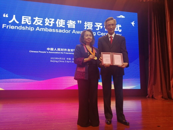 “今天授予她(阿罗约)‘人民友好使者’荣誉称号可谓实至名归,既是表达中国人民的敬意和感谢,也是期待有更多的有识之士致力于中菲友好事业。”林松添说。