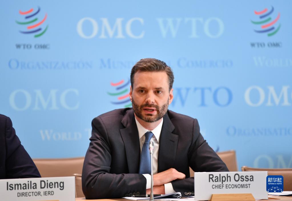 4月5日,在瑞士日内瓦的世贸组织总部,世贸组织首席经济学家拉尔夫·奥萨在新闻发布会上讲话。