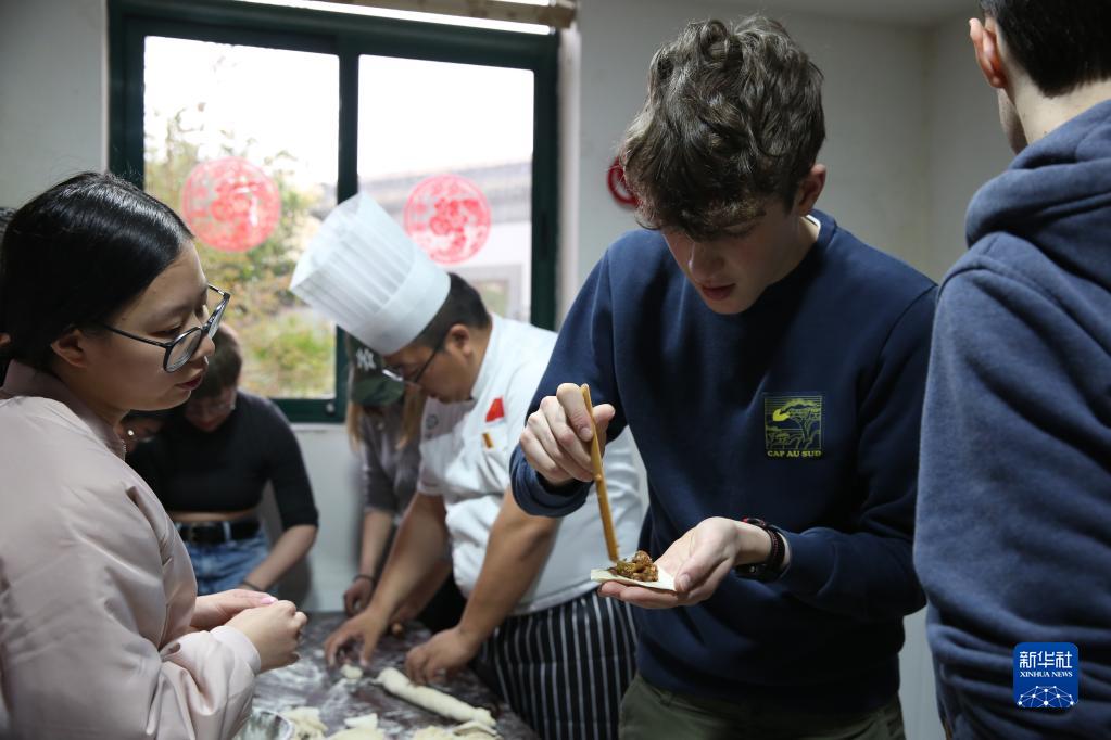 4月5日,学生们在马耳他保拉市地中海地区中医中心包饺子。