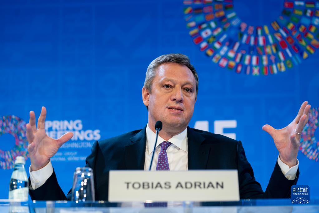 4月11日,在美国华盛顿,IMF货币与资本市场部主任托比亚斯·阿德里安出席记者会。