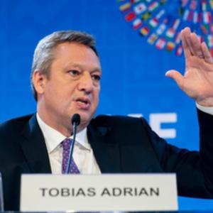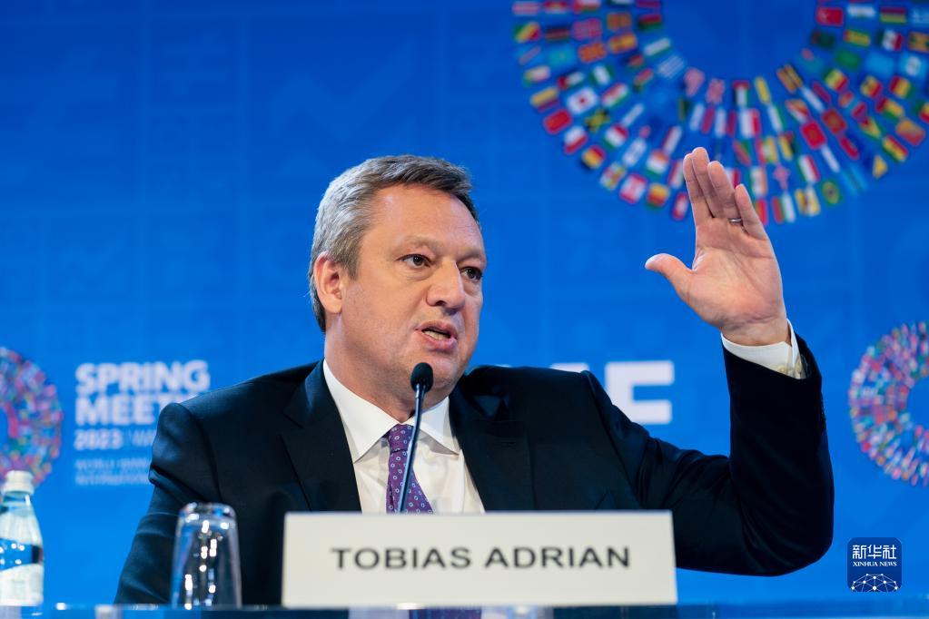 4月11日,在美国华盛顿,IMF货币与资本市场部主任托比亚斯·阿德里安出席记者会。