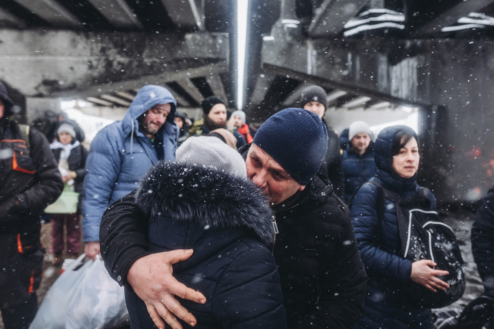 这是2022年3月8日,一对情侣在乌克兰伊尔平告别。新华社发(迭戈·埃雷拉摄)