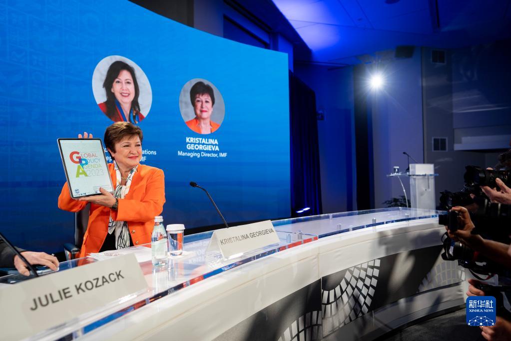 4月13日,在美国华盛顿,国际货币基金组织(IMF)总裁格奥尔基耶娃出席记者会。