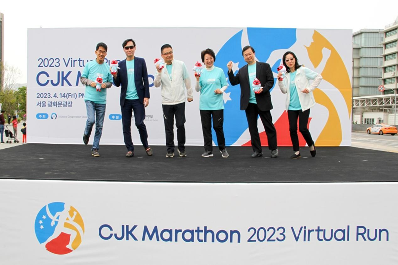 新华网首尔4月14日电(记者周思雨 陆睿)中日韩合作秘书处14日在韩国首尔光化门广场举办“2023中日韩线上马拉松大赛”启动仪式。