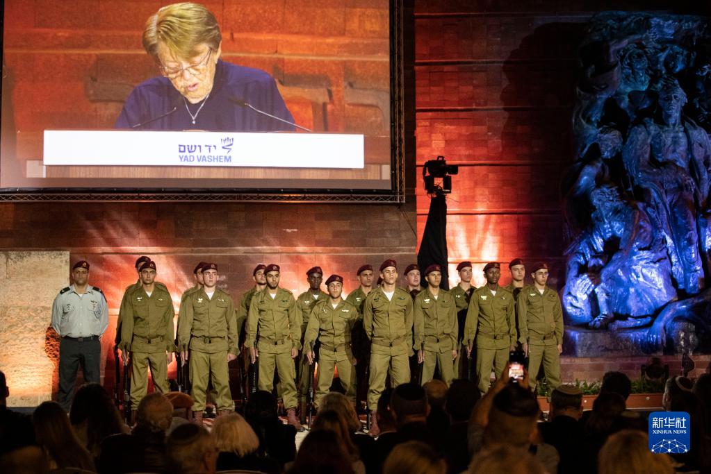 以色列17日晚在位于耶路撒冷赫茨尔山的亚德瓦希姆大屠杀纪念馆举行大屠杀纪念日活动,悼念第二次世界大战中的犹太死难者。