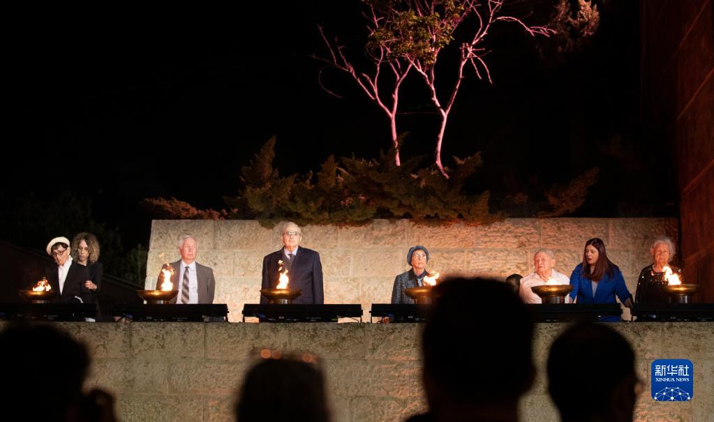 以色列17日晚在位于耶路撒冷赫茨尔山的亚德瓦希姆大屠杀纪念馆举行大屠杀纪念日活动,悼念第二次世界大战中的犹太死难者。