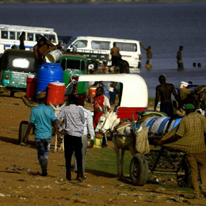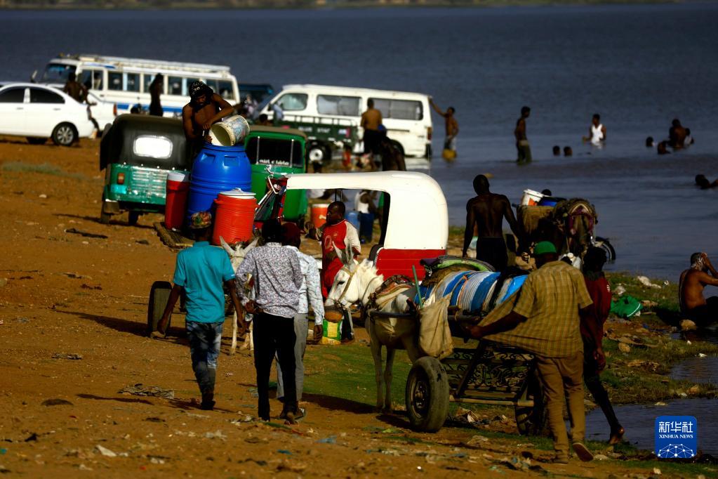 4月17日,由于武装冲突导致停水,苏丹喀土穆市民到尼罗河打水。
