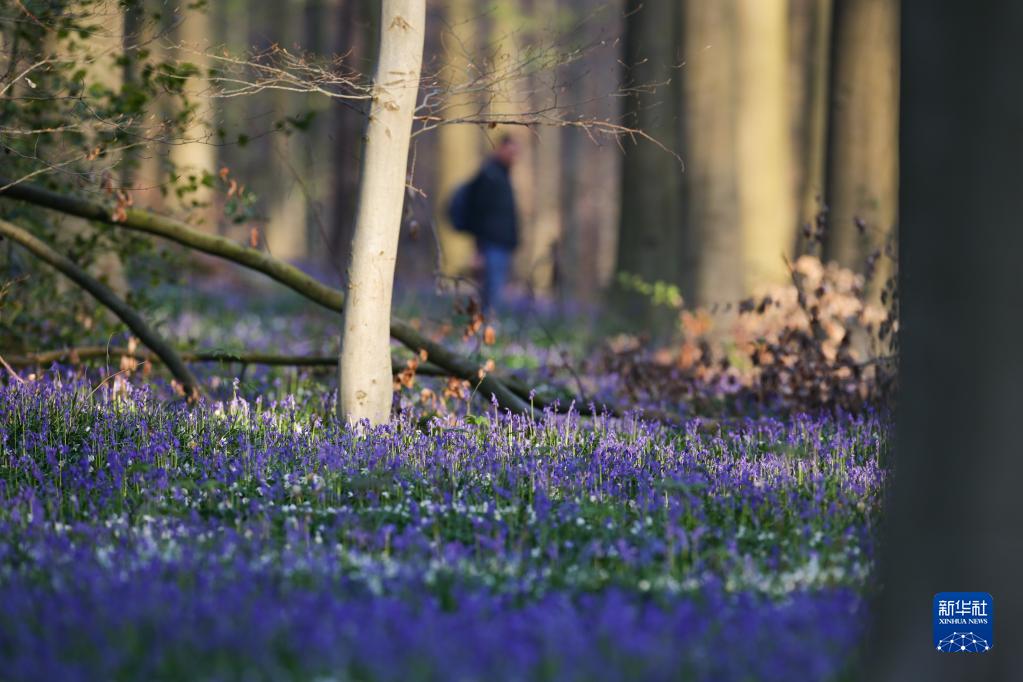 4月19日,游客走在比利时哈勒市附近的哈勒森林中。