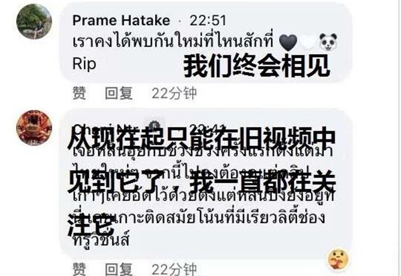 在泰国社交媒体上,许多泰国网民在直播页面上留言,对“林惠”的离世表示难过,感谢“林惠”给泰国人民带来的欢乐。