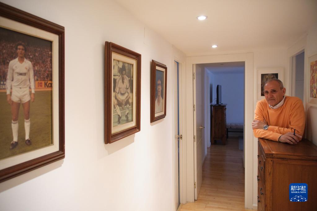 这是4月17日在西班牙马德里拍摄的阿方索和他球员时期的照片。新华社记者 孟鼎博 摄