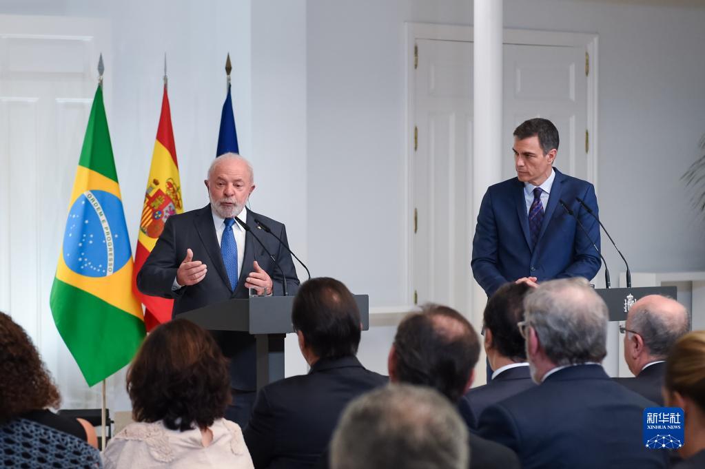 4月26日,巴西总统卢拉(左)和西班牙首相桑切斯在马德里举行联合记者会。