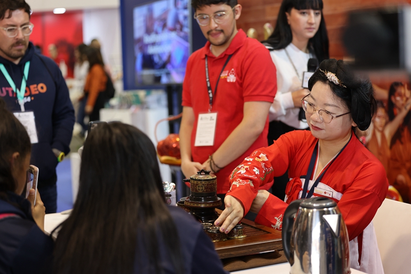 塔德奥大学孔子学院的老师们在表演中国茶道。记者唐薇 摄