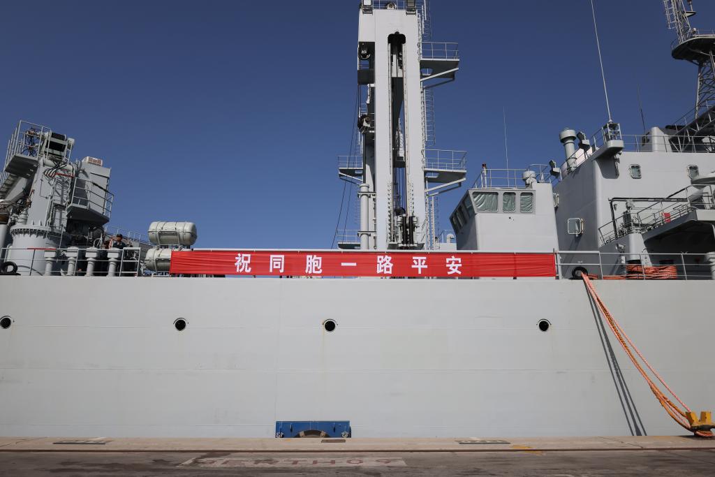 4月29日,中国海军微山湖舰抵达沙特阿拉伯吉达港。新华社记者王海洲摄