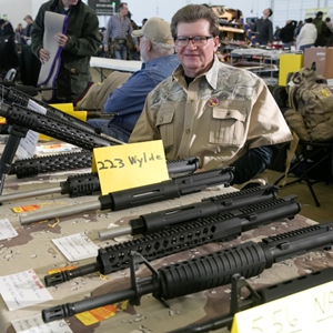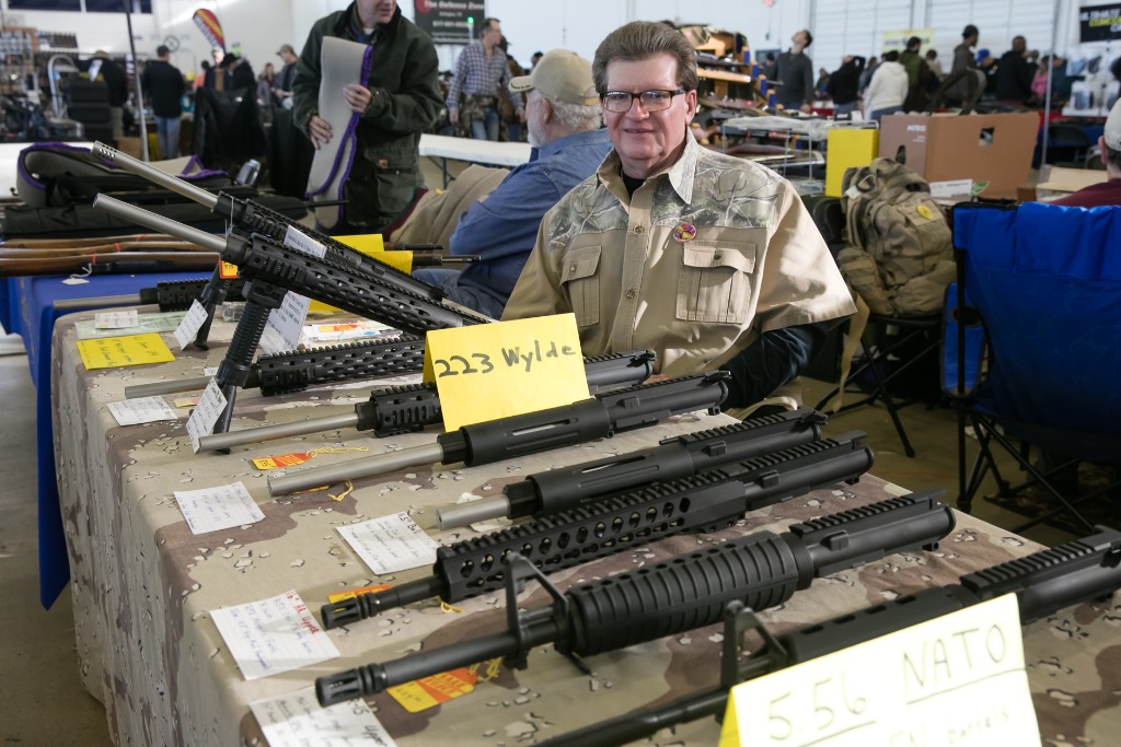 这是2017年1月7日在美国得克萨斯州达拉斯拍摄的枪展展台。新华社发(田丹摄)