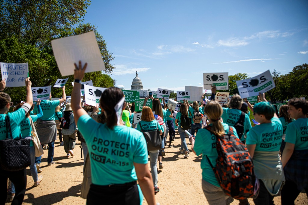 4月17日,人们在美国首都华盛顿参加控枪游行,呼吁禁止销售攻击性武器,应对美国枪支暴力问题。新华社发(亚伦摄)