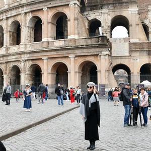 5月1日,一名中国游客在意大利罗马斗兽场拍照。
