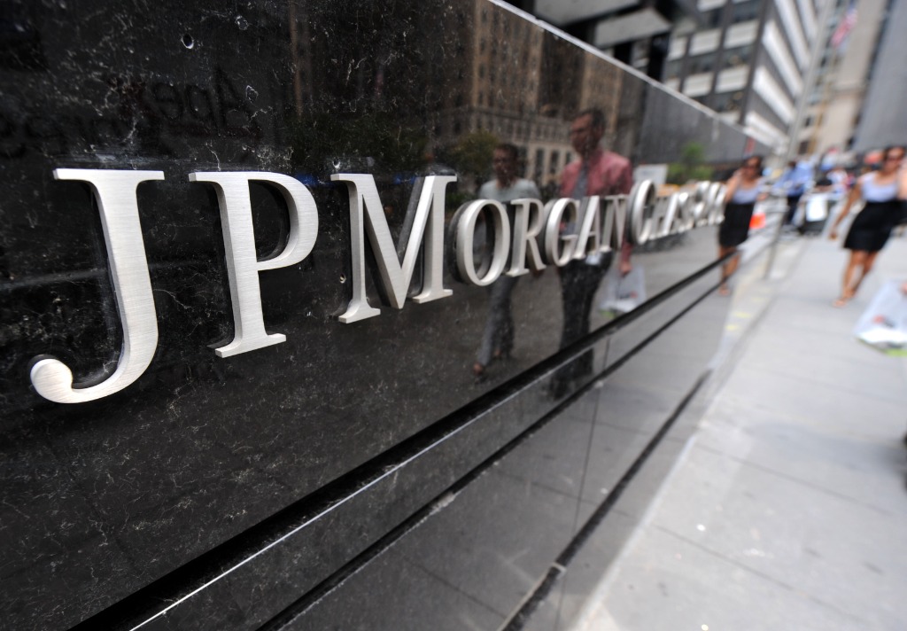 2009年7月17日,行人从位于纽约曼哈顿的摩根大通公司外经过。(新华社记者申宏摄)