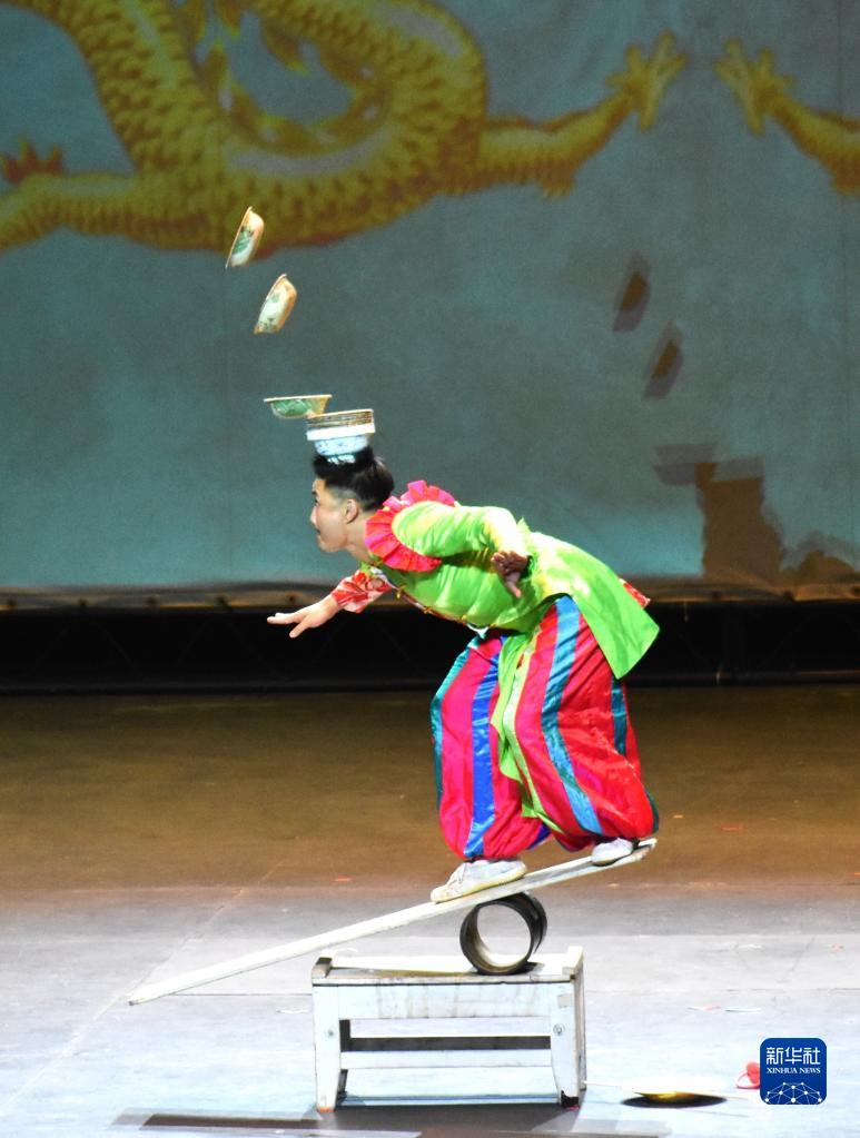 舞台上,演员们在晃板上翘碗,在高空吊环中盘旋飞舞,用足尖玩转日常生活用品,以口技模仿各种声效……十几个杂技节目令人目不暇接。他们刚柔并济,时而诙谐时而奔放,以精湛的表演和有趣的互动引来观众阵阵惊叹和掌声,频频将现场气氛推向高潮。