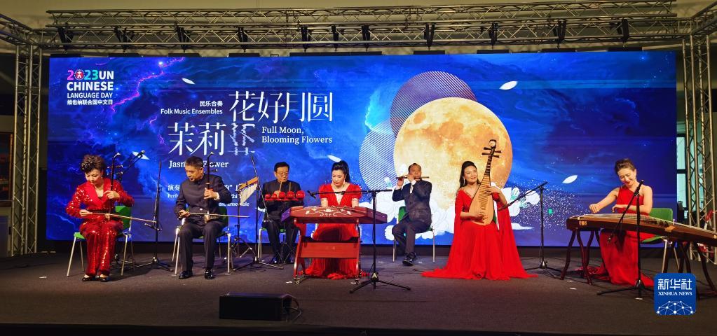 5月2日,在奥地利维也纳联合国城,中国艺术家在2023年维也纳联合国中文日系列活动开幕式上表演。新华社发(中国常驻维也纳联合国代表团供图)