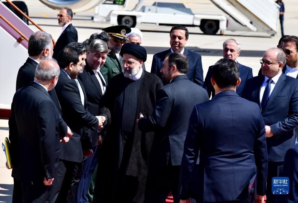 5月3日,伊朗总统易卜拉欣·莱希抵达叙利亚大马士革国际机场。新华社发(阿马尔·萨法尔贾拉尼摄)