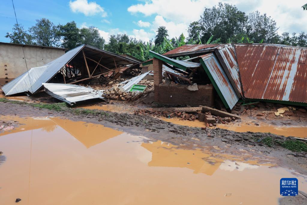 这是5月4日在卢旺达西方省拍摄的在强降雨和洪水中受损的房屋。