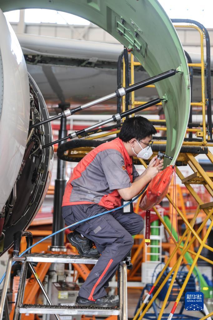 5月5日,海航技术旗下大新华飞机维修服务有限公司的机务维修人员对进境飞机进行检修。