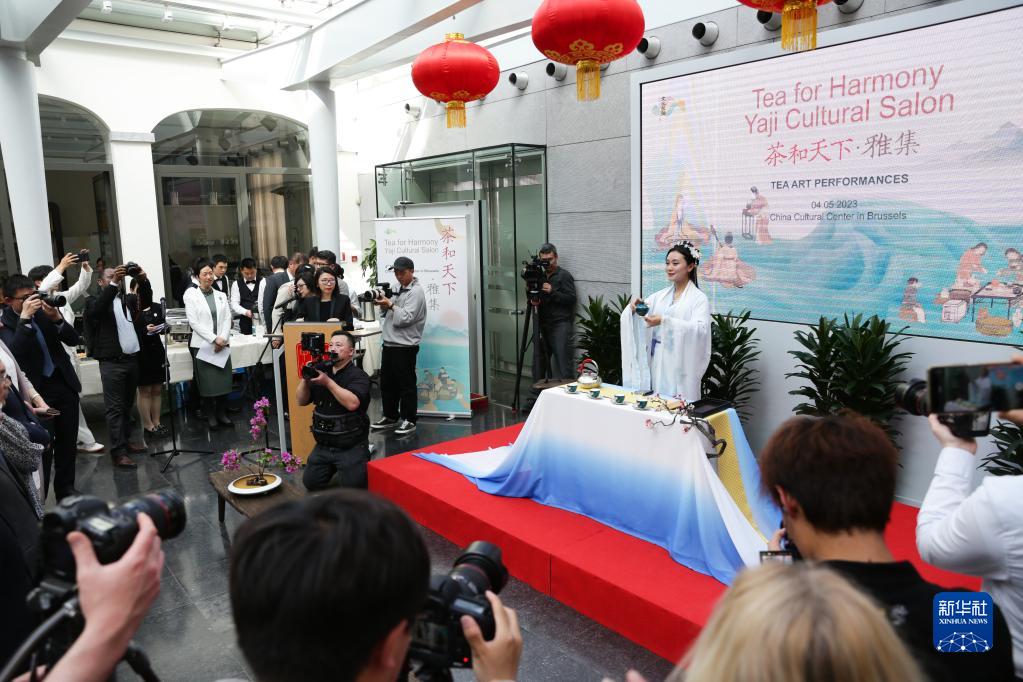 由中国文化和旅游部、中国驻比利时大使馆、中国驻欧盟使团共同举办的“茶和天下·雅集”比利时站活动4日在布鲁塞尔中国文化中心开幕。新华社记者 郑焕松 摄