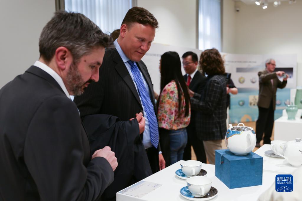 5月4日,人们在比利时布鲁塞尔的中国文化中心观看茶文化展览。