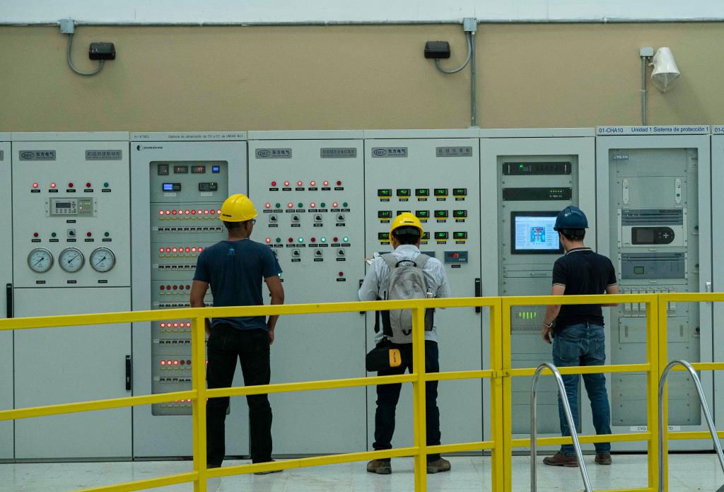 4月28日,当地员工在洪都拉斯帕图卡三水电站内工作。新华社发(戴维·德拉帕斯摄)