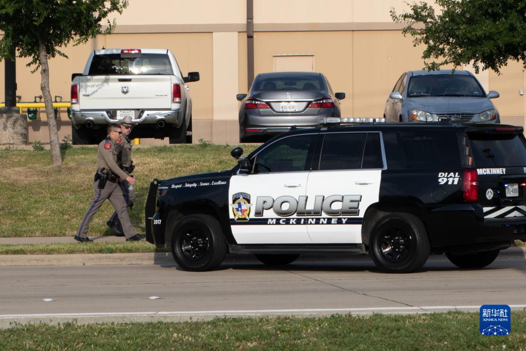 5月6日,警车停在美国得克萨斯州达拉斯近郊发生枪击事件的购物中心附近。