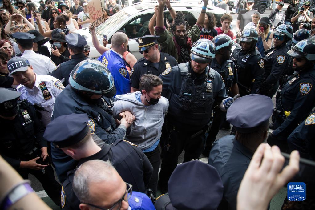 5月6日,在美国纽约,警察与抗议者发生冲突。