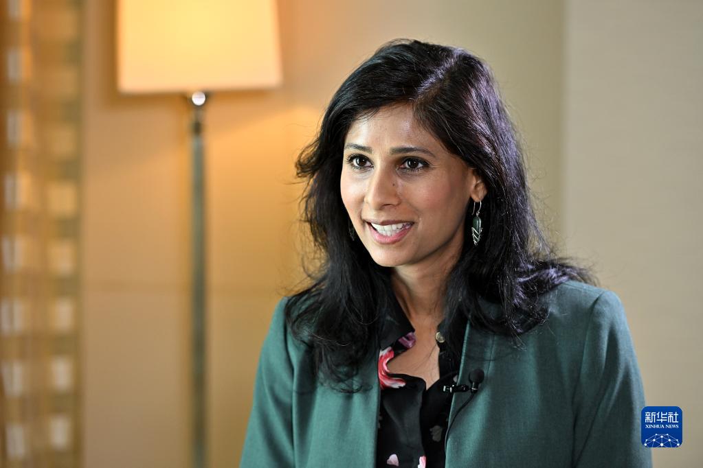 国际货币基金组织(IMF)第一副总裁吉塔·戈皮纳特接受新华社记者专访(5月8日摄)。新华社记者 李鑫 摄