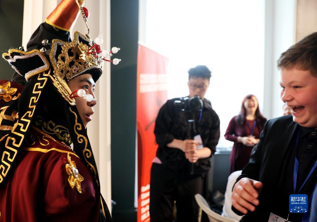 5月11日,在英国伦敦,演员在2023“国际中文日”英国主题活动上与学生互动。