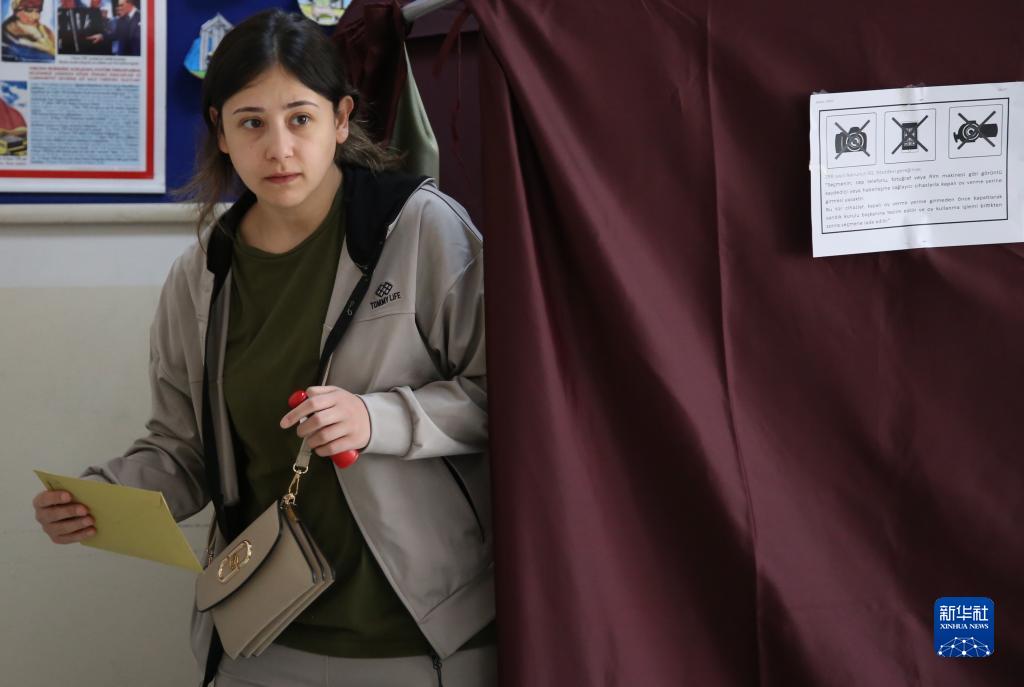 5月14日,在土耳其安卡拉,民众在一处投票站参加投票。