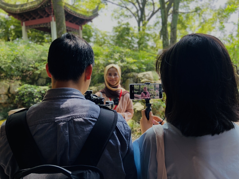 5月15日,“2023年中国有约国际媒体主题采访活动”采访团来到浙江省宁波市,中外媒体记者、网络达人参观了当地标志性历史文化建筑群——天一阁。