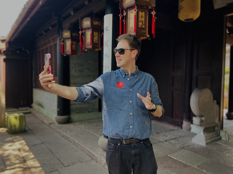 来自英国的托比正在录制视频。新华网 宿鑫 摄